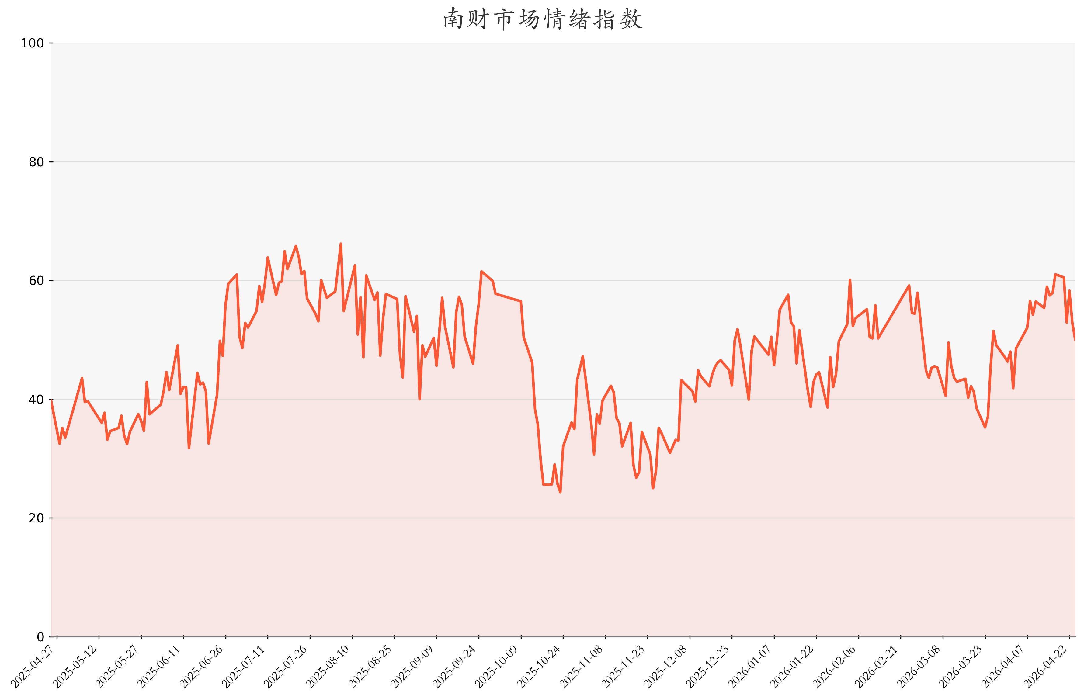 广州股票配资官网 今日南财市场情绪指数为50.08,市场投资热度降低