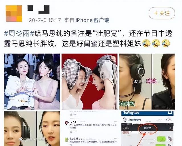 类似的情况在之后几年继续出现。2016年,周冬雨与马思纯共同主演《七月与安生》。那年11月26日,第53届金马奖在台湾举行,两人凭借这部电影并列获得最佳女主角,成为金马奖历史上首次出现的双影后。获奖感言中,周冬雨提到自己家庭没有人从事电影行业,这番话让部分人觉得其中带有其他意味。之后在节目中,她又说起马思纯因生病导致体重变化,并特别指出有两条肥胖纹,还把对方微信备注设为类似描述。截图流传后,网友开始质疑两人友情是否像表面那样亲密。